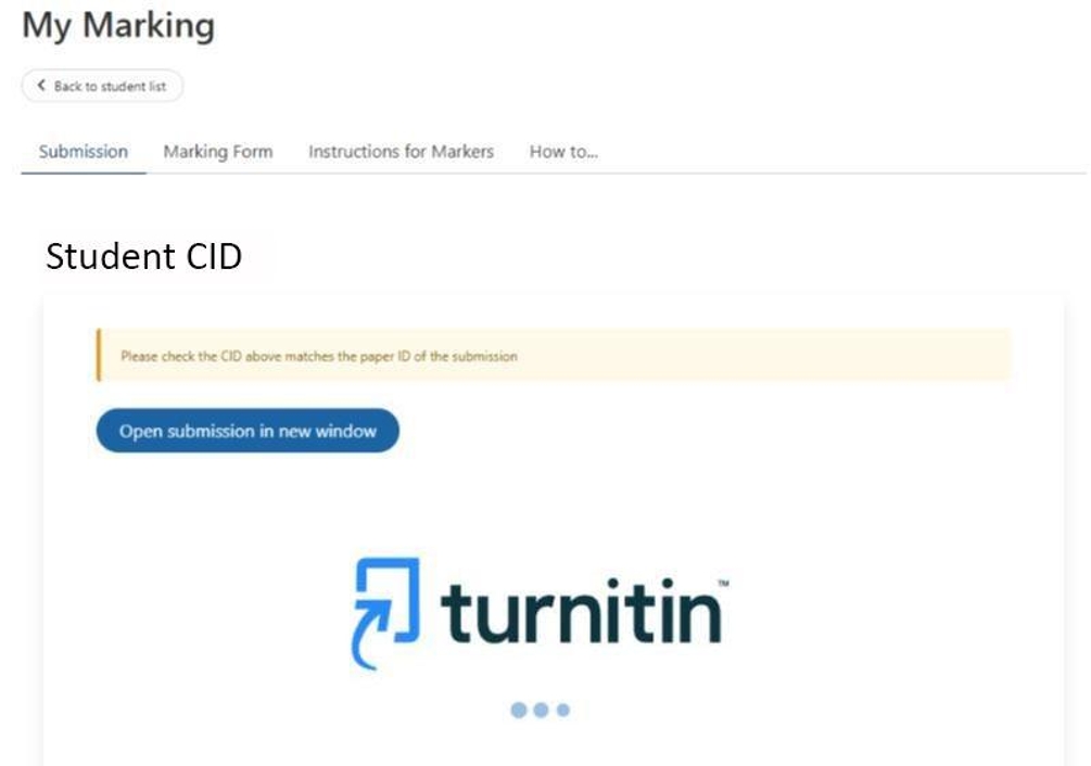 If you're trying to access a student submission in MedLearn, but your browser page is stuck at the Turnitin loading screen, and itĀ does not load after some time, re-visit and complete Steps 1, and Steps 4-7 in theĀ Marker Guidance instructionĀ ensuring that the web pages have fully loaded before closing.