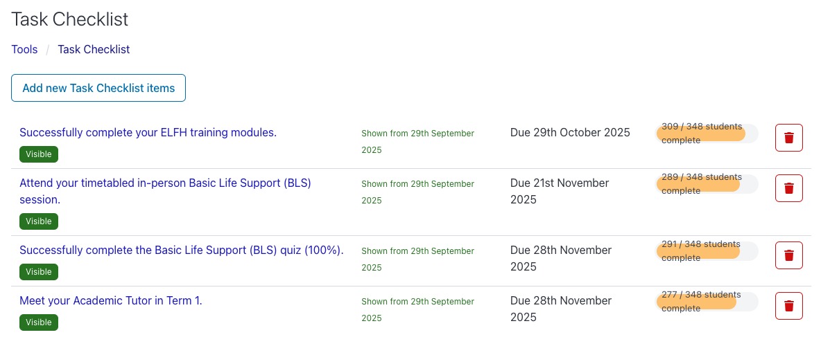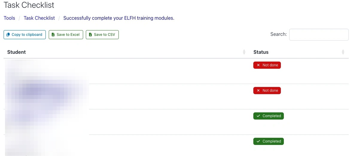 Each item will also have a report feature showing the status for each student. This can also be downloaded as a spreadsheet.
