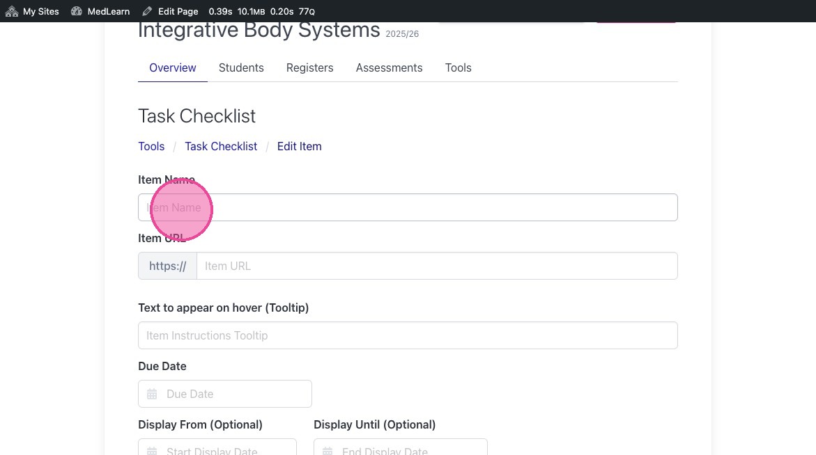 Learn how to create items for a task checklist on the MedLearn platform. This guide walks you through the steps to locate and create entries, ensuring your checklists remain accurate and up-to-date.