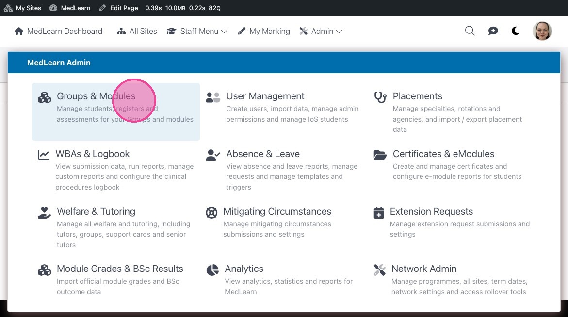 Click “Groups & Modules”